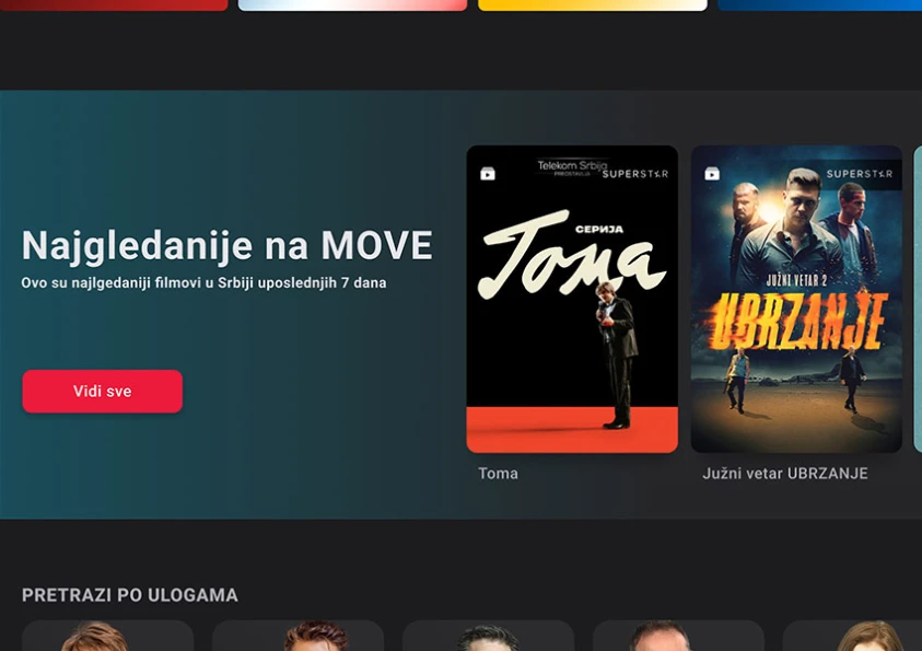 MOVE je nova platforma koja ti donosi potpuno drugačije iskustvo gledanja najtraženijih TV kanala sa Balkana, hit serija i kultnih filmova. Uživaj u izuzetnom sadržaju i jedinstvenom interfejsu koji je intuitivan i lak za korišćenje.